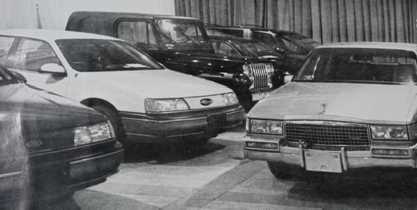На снимках можно увидеть три Ford Taurus первого поколения (производился до 1992 года), Chevrolet Beretta, Jeep Wrangler, Cadillac Seville, Cadillac Deville, Chevrolet Caprice и даже минивэн Pontiac Trans Sport.