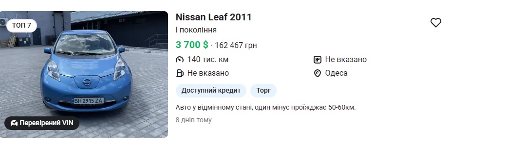 Цены на Nissan Leaf в Украине
