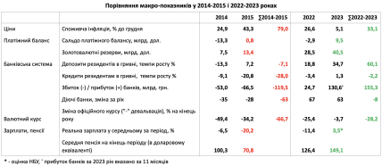 Для того чтобы понять о чем идет речь, давайте сравним с событиями 2014-2015 годов. Очевидно, что всей этой синергии не было 10 лет назад, когда началась война с Россией. Так, институциональная способность НБУ в то время была хуже, а накопленные макроэкономические дисбалансы были значительными, но только одними этими факторами нельзя объяснить величину потерь от финансового кризиса 2014-2015 гг.