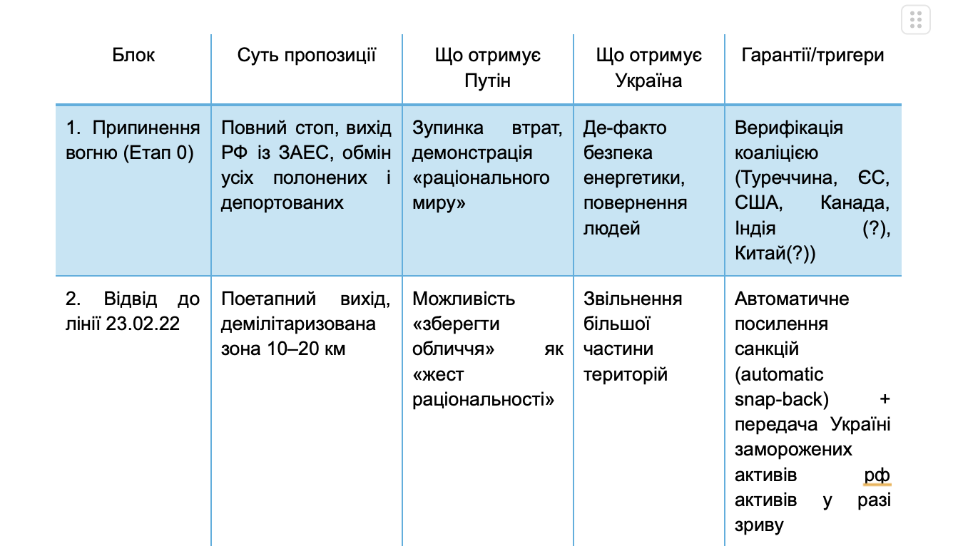 Такой план – это не о капитуляции, а о прагматической модели мира, которая минимизирует риски для Украины и создает механизмы принуждения для России, заставляя ее действовать в более выгодных для нас рамках.