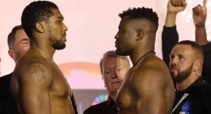 В Саудовской Аравии провели процедуру взвешивания боксеров накануне большого шоу, запланированного на 8 марта. В этот вечер в ринг выйдут бывший чемпион мира по боксу Энтони Джошуа и бывший чемпион UFC Фрэнсис Нганну.