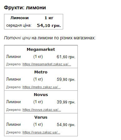 Лимон также подешевел на 11,26 грн. Средняя цена составляет 54,10 грн.