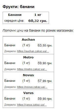 Что касается бананов, то их стоимость почти не изменилась, выросла на 0,38 грн. Средняя стоимость супермаркетов и рынков составляет 60,32 грн/кг.