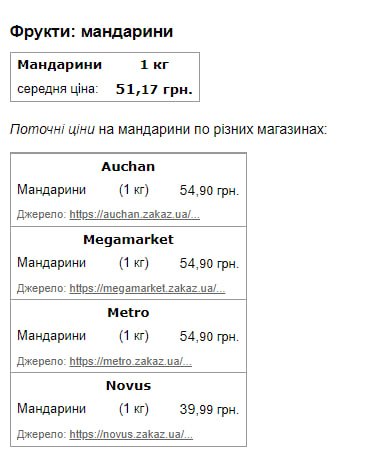 Мандарины также не отстают и сейчас один килограмм стоит 51,17 грн, в среднем. Цена уменьшилась на 20,68 грн, по сравнению с началом года.