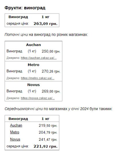 Рекордсменом в средней стоимости и росте цены является виноград. Сейчас он стоит 263,09 грн за один килограмм. Его цена по сравнению с январем выросла на 17,63 грн.