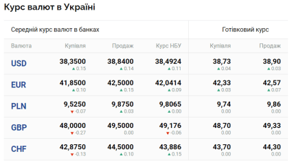 По данным портала "Минфин", в среду, 13 марта, средний курс доллара в украинских банках составляет 38,35 грн (покупка) и 38,84 (продажа). Наличный курс — 38,73 (покупка) и 38,90 (продажа). В то же время официальный курс Национального банка Украины — 38,49.