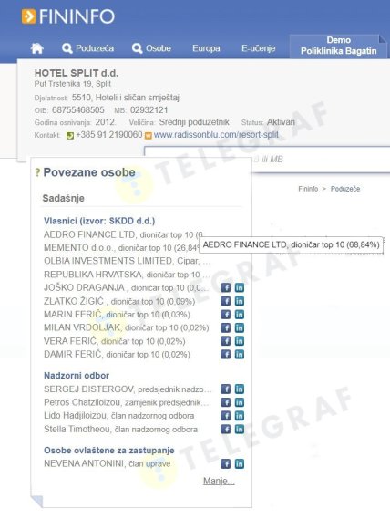 - компания AEDRO FINANCE LTD, с долей 68,84%. Это оффшор в Белизе, который, как известно, наглухо прячет владельцев зарегистрированных там фирм. Именно там любят регистрировать свои "прокладки" Коломойский и Боголюбов, Суркисы и другие многочисленные представители украинского эстеблишмента. По данным хорватской печати, эта фирма является основным кредитором отеля.