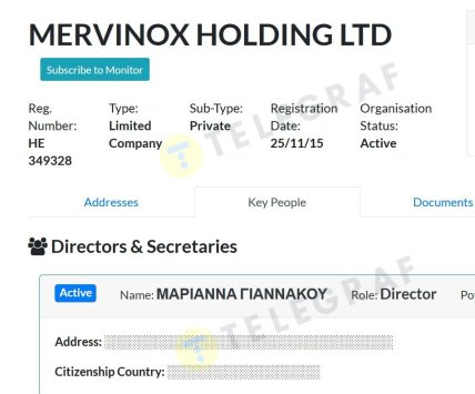 Еще одна связь к Боголюбову-Коломойскому с вышеупомянутыми компаниями прослеживается через их руководство. Так, директор компании MERVINOX HOLDING LTD (совладельца компании OLBIA INVESTMENTS LTD, управляющей и владеющей отелем) – это некая Марианна Гианнаку (греч. — Μαριαννα Γιαννακου, англ. — Marianna Giannakou).