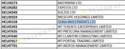 При этом владельцем мажоритарной части самой OLBIA INVESTMENTS LIMITED является опять же кипрская MERVINOX HOLDING LTD.