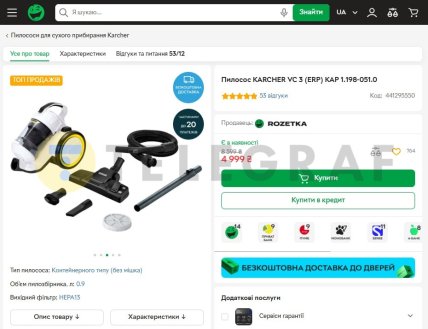 В настоящее время на Rozetka есть хорошая акция на пылесос от KARCHER. Его обычная цена 8599 гривен, но сейчас ценник опустился почти до 5 тысяч гривен.
