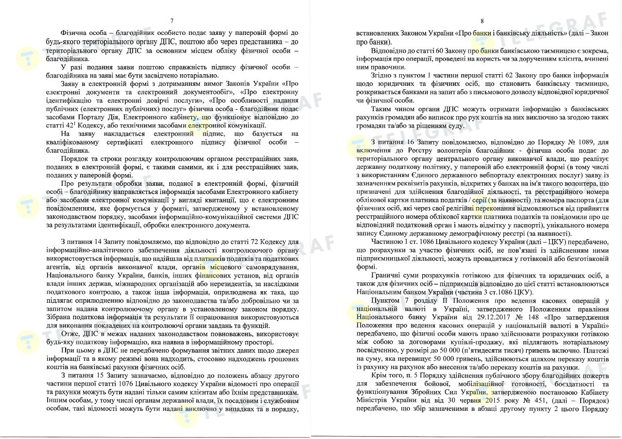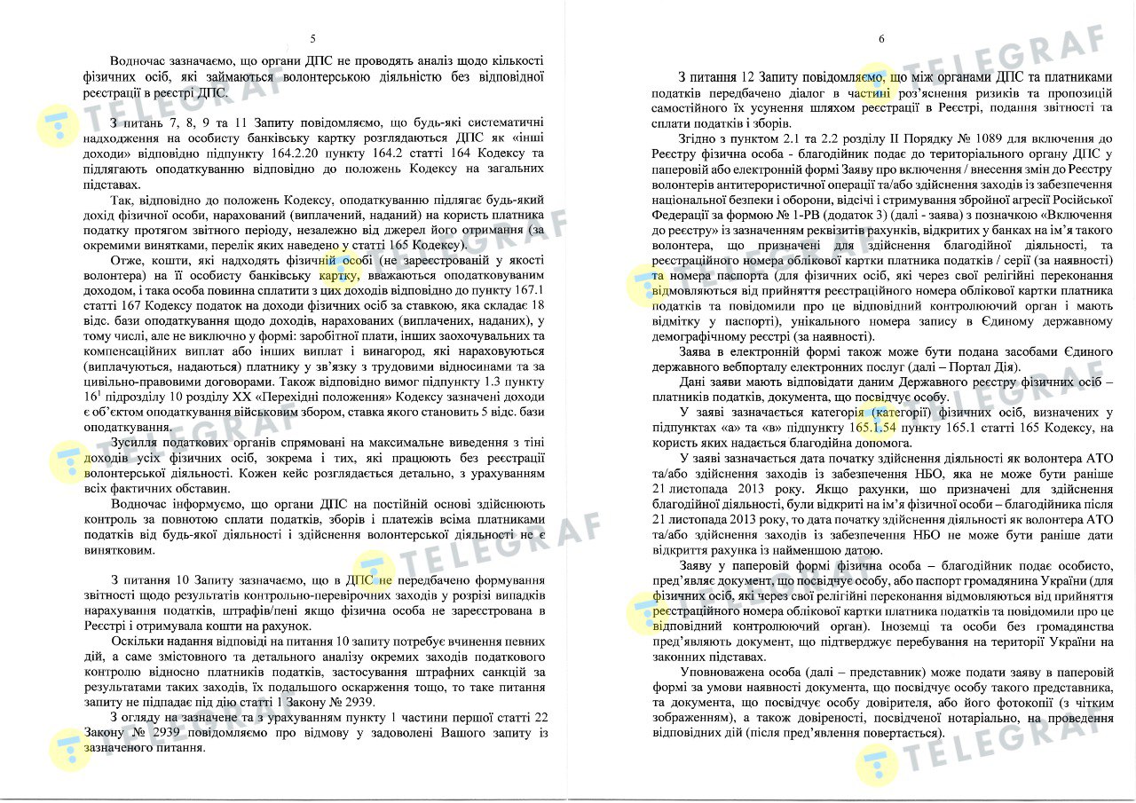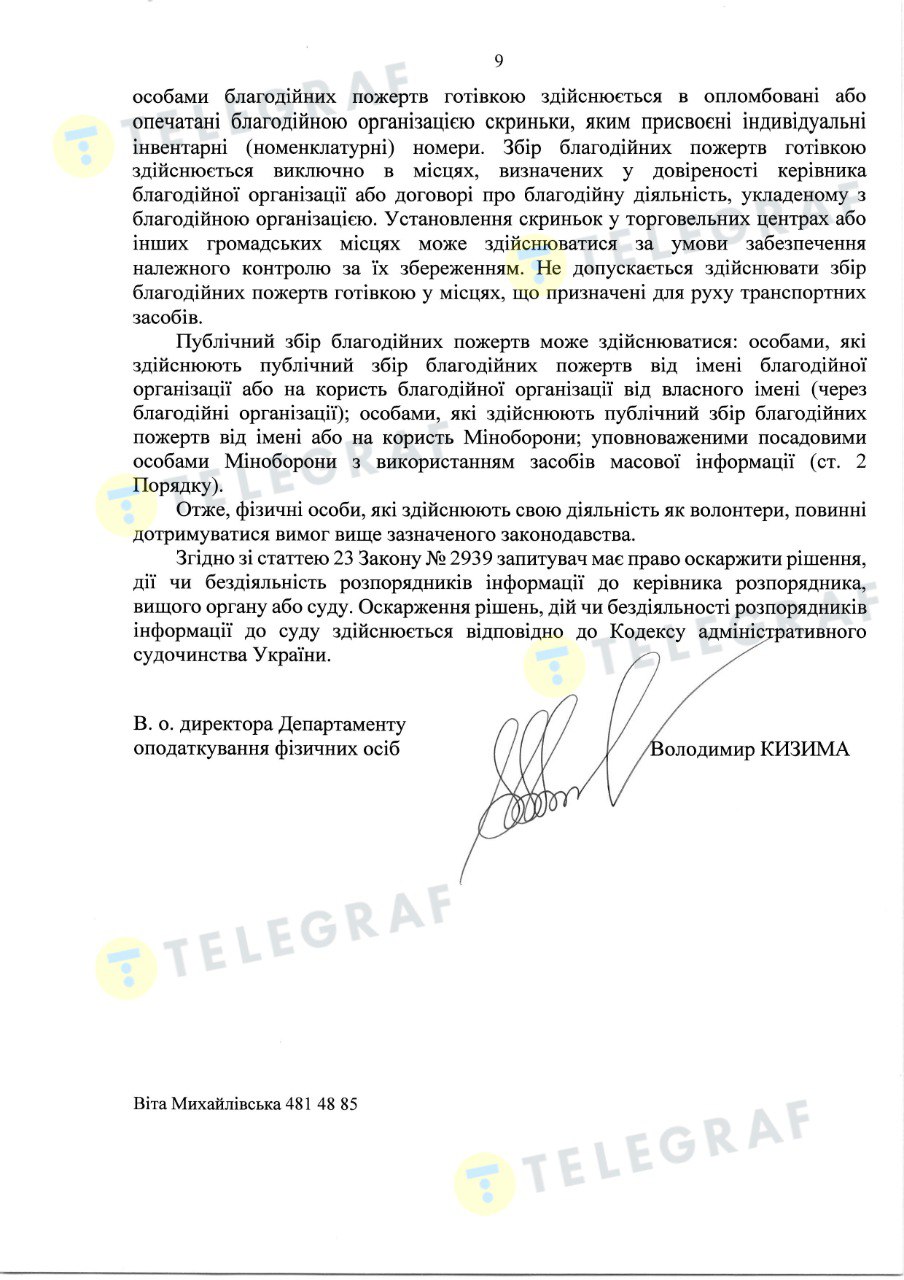 "Средства, которые поступают на расчетный счет физического лица как благотворительные взносы, если такое лицо не зарегистрировано в реестре волонтеров, включаются в налогооблагаемый доход и облагаются налогом в соответствии с нормами раздела IV "Налог на доходы физических лиц" и пункта 16.1 подраздела 10 раздела XX "Переходные положения" "Телеграфа", которую подписал и. о. директора департамента обложения физических лиц Государственной налоговой службы Владимир Кизима.