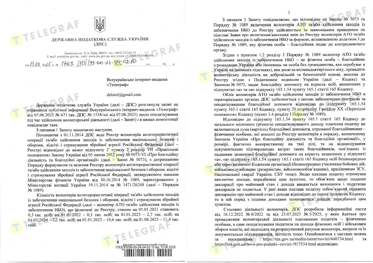 "В последние месяцы количество проверок и случаев выявления незарегистрированных волонтеров возросло. Официальный Реестр волонтеров в этом году вырос в 1,5 раза из-за активизации фискальных органов и повышения контроля, особенно в отношении переводов на личные карточки. В то же время очень многие продолжают собирать помощь вне реестра, и ГНС начала более системно проверять происхождение средств на личных счетах со второй половины 2025 года", — сообщил "Телеграфу" управляющий партнер юридической компании Winner Игорь Ясько.