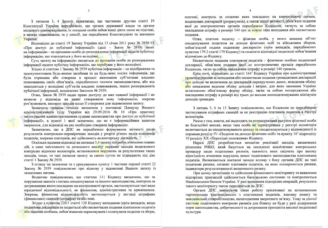 Однако председательствующий судья Салюк отметил в решении, что физлицо не было зарегистрировано в Реестре волонтеров ГНС и не предоставило документы, подтверждающие сборы и целевое использование собранных денег. Судья отклонил обвинение относительно возможных нарушений фискалов и вынес решение против человека (истца) — в пользу Налоговой.