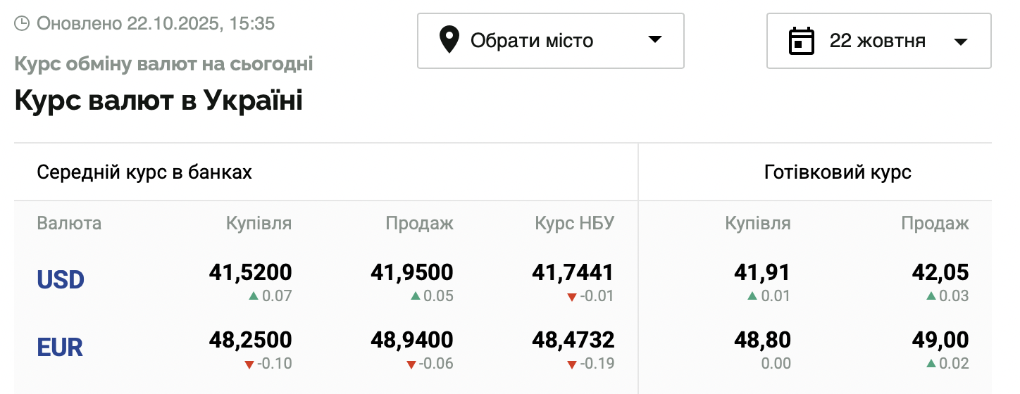 Собеседник "Телеграфа" подчеркнул, что в настоящее время курс стабилен, поскольку люди еще не отошли от шока после атаки. Отметим, что НБУ дает курс 22 октября 2025 такой: