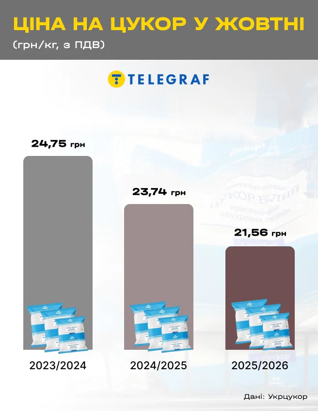 Интересно, что сахар в Украине дешевеет уже третий год. Эксперт привела пример динамики цен в октябре за последние три года, который четко показывает устойчивую тенденцию к снижению.