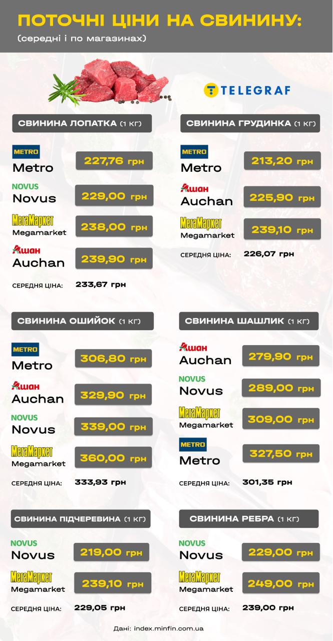По данным "Минфина", по состоянию на начало декабря в магазинах цены стартуют от 266 гривен (грудинка), средняя цена ошейка — 334 гривен.