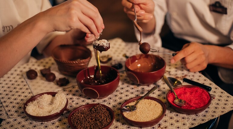 Шоколадный мастер-класс за 1250 гривен научит создавать конфеты. Мастер покажет все этапы работы с шоколадом – от темперирования до декорирования. Занятие длится 2 часа.