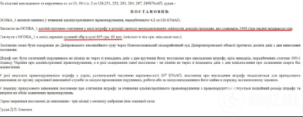 Таким образом, ему не стали выносить предупреждение. Ему необходимо уплатить 3400 гривен штрафа и 605 гривен судебного сбора.