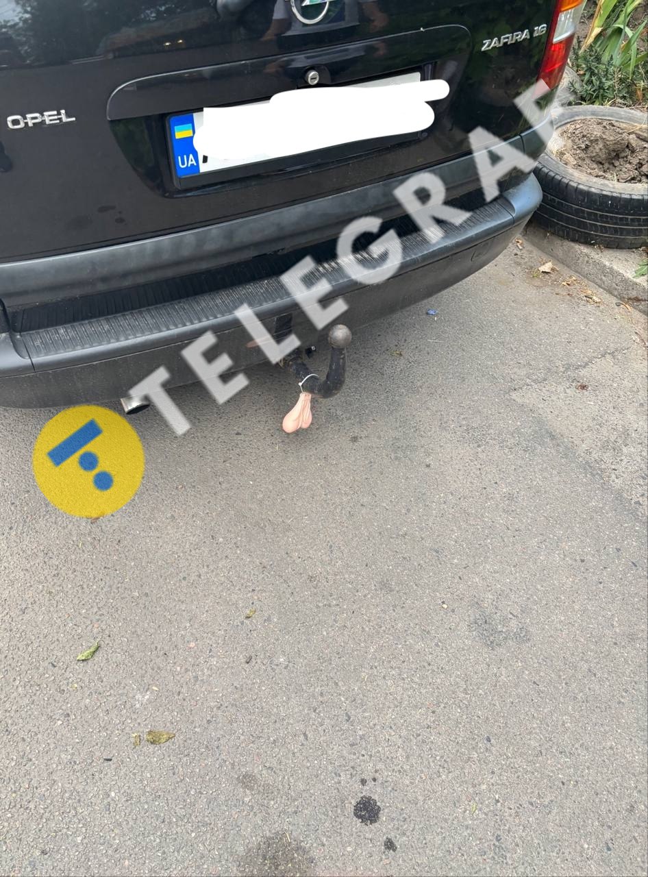 В Днепре на авто увидели довольно странную и забавную подвеску. Она была на буксировочном крюке.