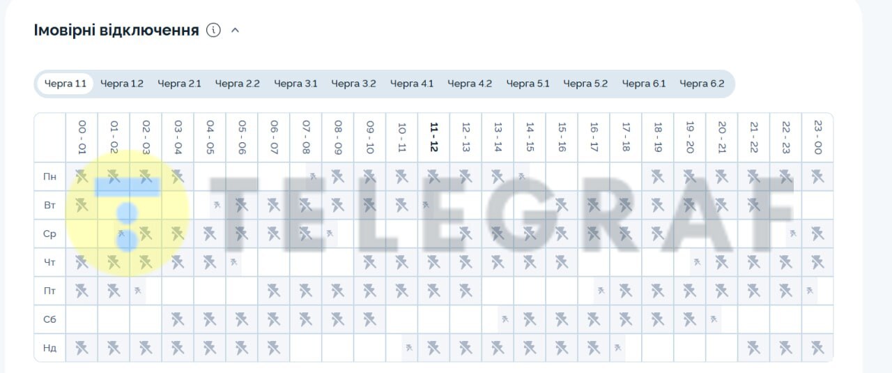 При этом, в информационном Telegram-канале об отключении света и воды в Днепре и Днепропетровской области указано, что в настоящее время известно о следующих графиках отключения света: