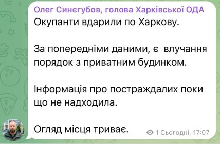 Эту же информацию подтвердил и глава Харьковской ОГА Олег Синегубов.