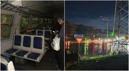 Как видно на снимках и видеозаписях из сети, из-за темных грозовых туч вечером в один момент стало темно.