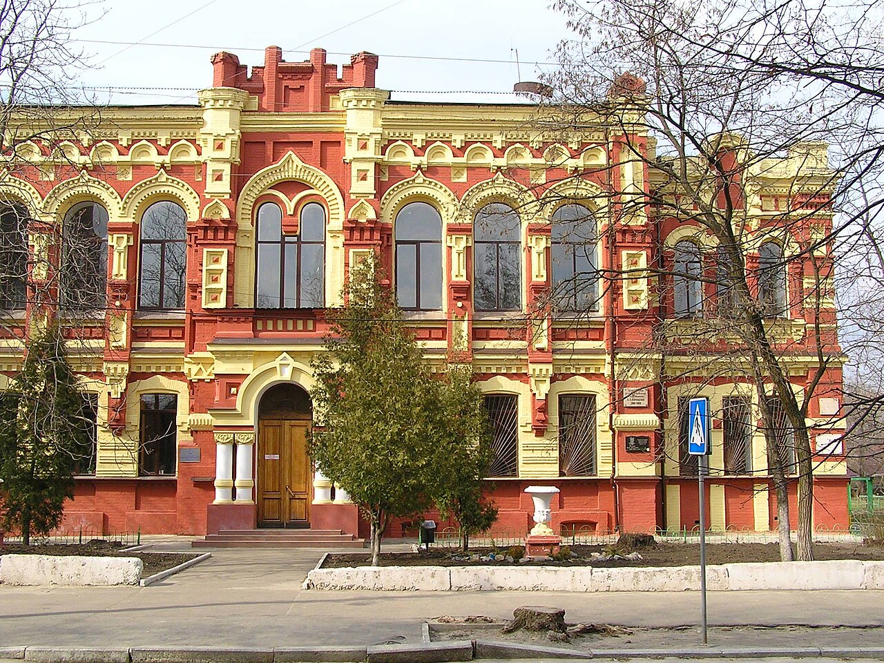 Еще одна интересная улица Москалевки – Марьинская. Здесь особенно примечателен дом 12/14. Возведенный в 1902 году по проекту архитекторов Бориса Корнеенко и Василия Величко, он начинался как торговая школа Общества взаимопомощи приказчиков. Двойной номер имеет, потому что в первой четверти ХХ века его соединили с соседней 4 городской гимназией, находившейся в бывшем особняке баронессы Унгерн-Штейнберг. При СССР здесь были: Центральное статистическое управление УССР, первый в стране Дом физкультуры, 47 школа, педучилище. Сейчас — Харьковский физико-математический лицей №27.