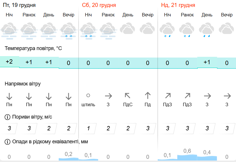 Согласно прогнозам украинских синоптиков, по данным Укргидрометцентра, в субботу, 20 декабря, в Харькове ожидается переменная облачность, существенных осадков не предполагается, кроме тумана. На отдельных участках дорог возможно образование гололеда, поэтому водителям следует соблюдать осторожность. Ветер южного направления, скоростью 3-8 м/с. Температура воздуха будет колебаться в пределах 0…+2 градуса.