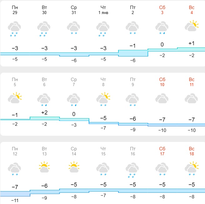 Так, по данным синоптиков с meteofor, в период с 8 по 12 января в областном центре ожидаются морозы. Столбики термометров в эти дни могут находиться на уровне -7-11 градусов. Также возможен небольшой снег.