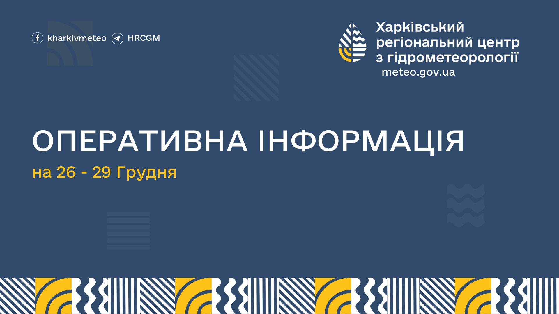 По данным специалистов, с прохождением активных атмосферных фронтов с северо-запада с 26 по 29 декабря в Харьковской области прогнозируется ухудшение погодных условий.