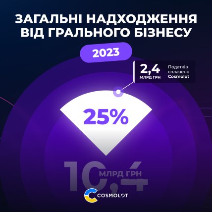 Налоги от компании Cosmolot за 2023 год составляют 2,4 млрд грн