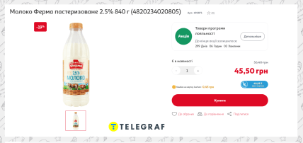 Где сейчас можно дешевле купить молоко марки "Ферма" (2,6% жирности, 840 мл), узнавал "Телеграф". Рассмотрим цены в ведущих супермаркетах Украины: