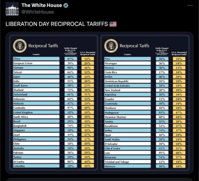 В некоторых случаях пошлины еще более жесткие. К примеру, для Китая введен новый тариф в 34%, не учитывающий уже действующие 20% пошлины, связанные с борьбой с незаконным оборотом фентанила. Таким образом, общая ставка для КНР достигла 54%.