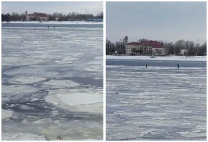 В пятницу, 19 января, в Оболонском районе Киева о стороны парка "Наталка" прохожие заметили двоих мужчин, которые вышли на опасный лед. Они буквально дрейфовали по Днепру на льдине и при этом занимались рыбной ловлей.
