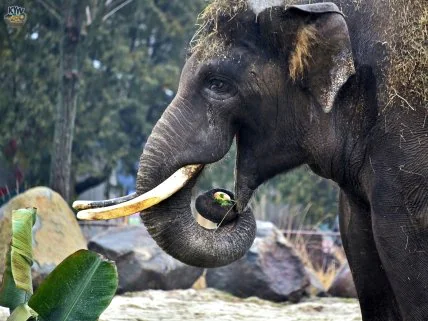 "Мы поздравили нашего слоника особыми вкусностями: сочным овощно-фруктовым миксом на банановом листе. А не по-зимнему теплая погода позволила устроить имениннику еще и спортивные развлечения!", — написали в соцсети представители "КиевЗоо".