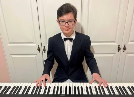 Мальчик посещает музыкальную школу и играет на фортепиано