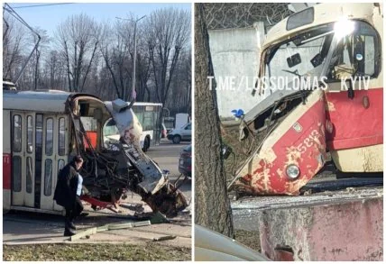 Во вторник, 27 февраля, в Соломенском районе Киева произошло серьезное ДТП при участии трамвая и грузового автомобиля. В результате столкновения, кабина трамвая оказалась очень сильно повреждена — ее буквально разорвало на несколько частей.