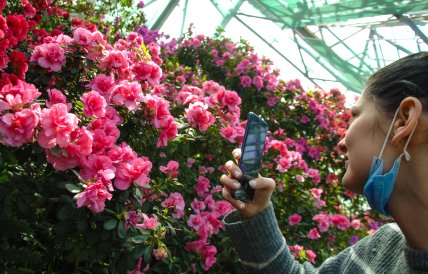 Благодаря умелому подбору экспозиций из разных сортов, ботанический сад обеспечивает непрерывное цветение с декабря по апрель. Однако в начале марта наступил самый яркий период, когда представлено 30 сортов азалий и 15 сортов камелий во всей их красоте.