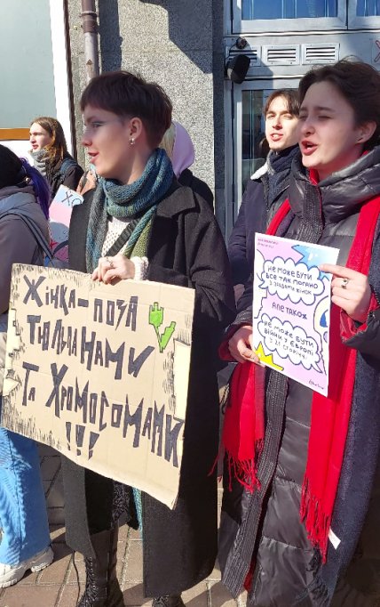 8 марта, в Международный день женщин, в центре столицы Украины прошла акция по правам женщин. Десятки людей собрались на Крещатике, чтобы выразить свою поддержку гендерному равенству и призвать к борьбе с сексизмом и гендерно обусловленным насилием.