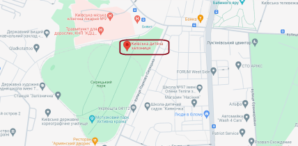 Киевская детская железная дорога находится в Сырецком парке на улице Парково-Сырецкая, 4. Сюда удобно доехать кольцевой электричкой до станции Сырец.