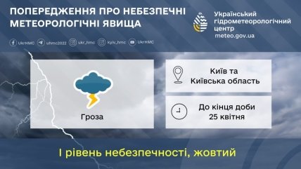 В ближайший час с сохранением до конца суток, 25 апреля, в Киеве ожидаются грозы, сильные ливни и град. Гидрослужбы "Киевавтодора" готовы к ухудшению погодных условий и уже мониторят места возможных подтоплений.