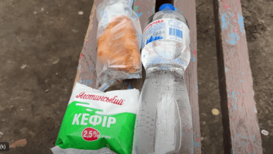 Прибыв в нужное место блогер зашел в магазин и купил минеральную воду, кефир и круасан. Потратил он на свой завтрак 50 гривен.