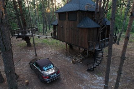 Tree House Retro — это младший брат большого домика на дереве и он также расположенный среди леса в Макаровском районе Киевской области.