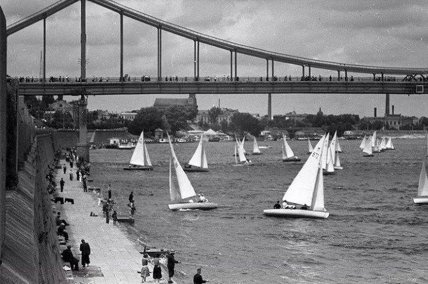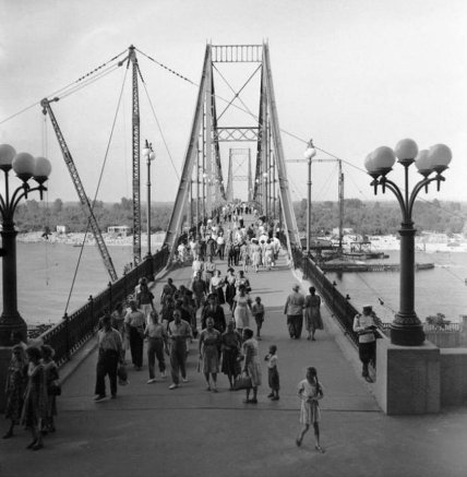 Торжественное открытие пешеходного моста через Днепр состоялось 3 июля 1957 года.