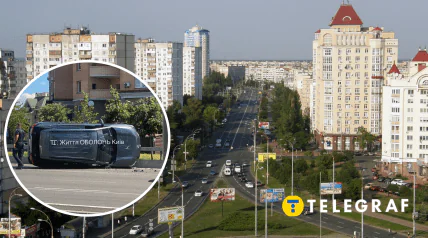 В пятницу, 28 июня, в Оболонском районе Киева произошло серьезное ДТП, в результате которого автомобиль Toyota RAV4 перевернулся на бок и частично перегородил проезжую часть. Из-за аварии движение по оживленному проспекту оказалось затруднено.