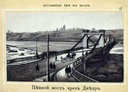 Интересно выглядит цепной мост, который был первым постоянным мостом через Днепр в Киеве. Существовал он с 1853 по 1920 год напротив Аскольдовой могилы и имел длину 776 метров.