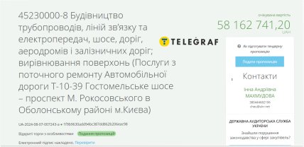 Коммунальное предприятие "Дорожно-эксплуатационное управление" объявило тендер на выполнение работ по текущему ремонту дороги. Общая стоимость проекта составляет более 58 миллионов гривен.