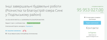 Стоимость работ была оценена в 95 миллионов 953 тысячи гривен. Расчистка водоема и благоустройство территории вокруг озера должны быть завершены до 31 декабря 2025 года.