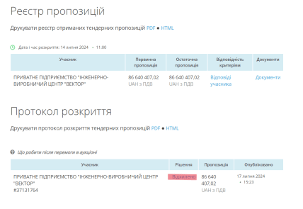 Сумма работ составляет 95 миллионов 953 тысячи гривен. Об этом свидетельствуют данные с сайта электронной системы публичных закупок Prozorro.