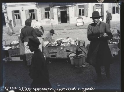 Также в кадр чешского фотографа попал и известный столичный Бессарабский рынок. Торговля на площади велась задолго до постройки здания рынка. К началу XX века Бессарабка превратилась в торговую площадь, сплошь покрытую разнообразными торговыми павильонами.